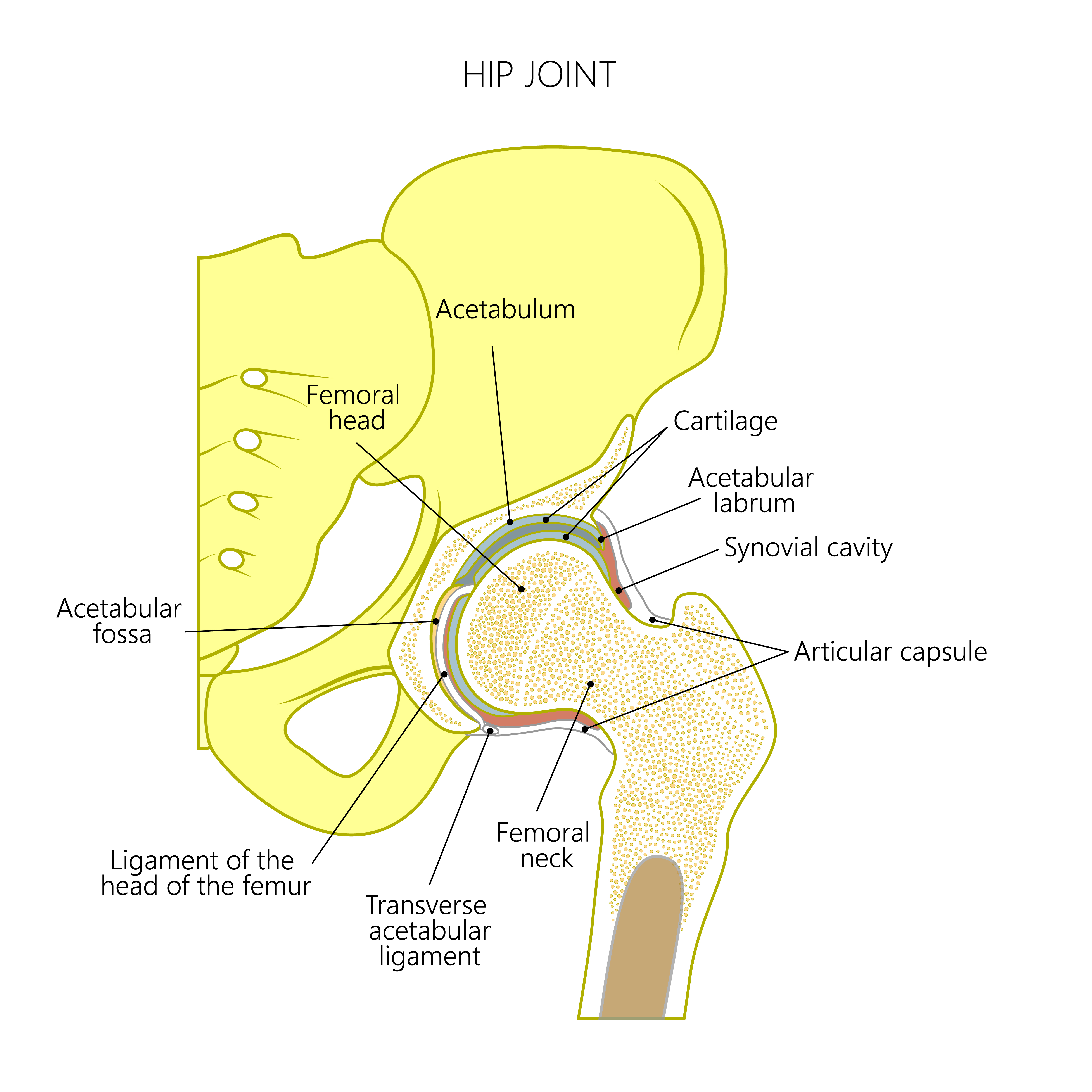 関節腔(かんせつくう):骨と骨との間の隙間のこと。そこは滑液によって満たされています。
